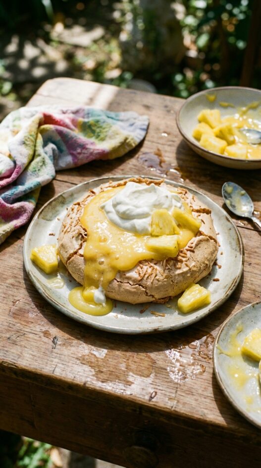 Pineapple Curd and Coconut Pavlova