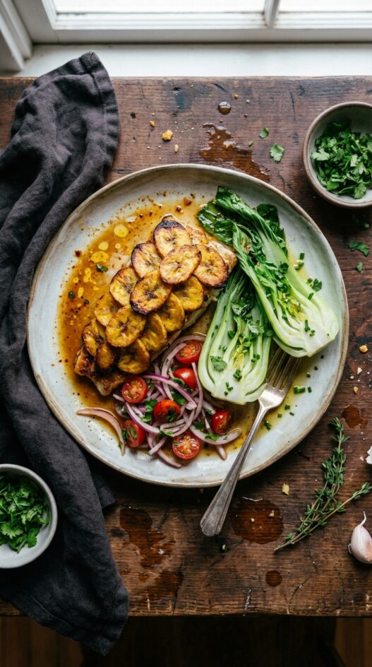 This recipe isn’t quick, but the end result is absolutely worth it—the look on your guests’ faces will say it all. If prepared all at once, the recipe takes about 3 hours and 15 minutes to 3 hours and 30 minutes. However, with some advance prep, you can cut the active cooking time to just 45-55 minutes on the day of serving. Also, check out “Seafood Masterclass: How to Choose, Handle, and Cook Like a Pro” for more helpful tips to ensure you crush this Plantain-Crusted Snapper dish.