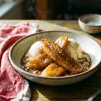 Spoon it over vanilla ice cream while it’s still warm and bubbling. The contrast between hot caramelized fruit and cold ice cream is exactly what makes this dessert work.