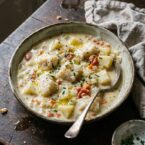 This has become one of my favorite soups of all time. we have made it probably ten times since I first found the recipe and it is always a huge success. we change the fish depending on what is available at a good price, and we also even incorporate shrimp sometimes. thank you so much!!