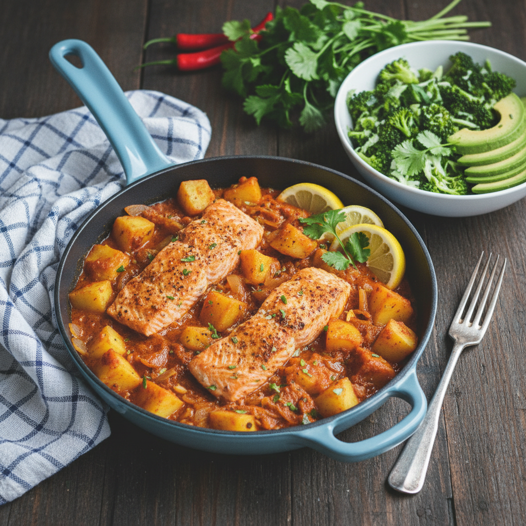 Ready in just thirty minutes, this potato and salmon dish is spicy, nourishing, and sensory scintillating.