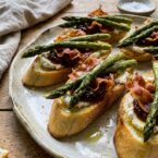 Crispy crostini topped with creamy goat cheese, salty prosciutto, and tender asparagus. A perfect appetizer for any occasion.