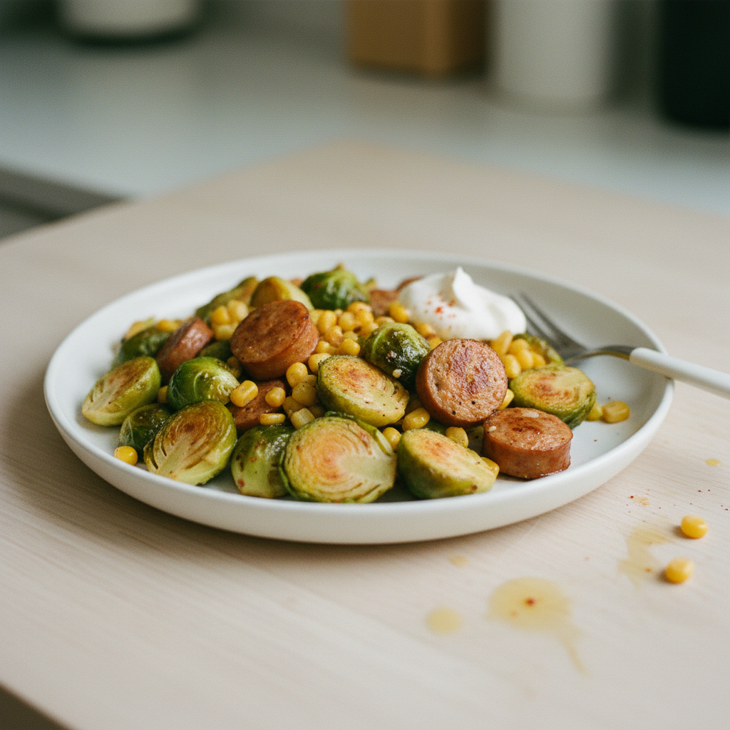 Quick, flavorful stir-fry featuring shredded Brussels sprouts and chicken sausage. Perfect with quinoa or as a side.