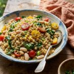 - Add beans, parsley, scallions, cherry tomatoes, and lemon zest.