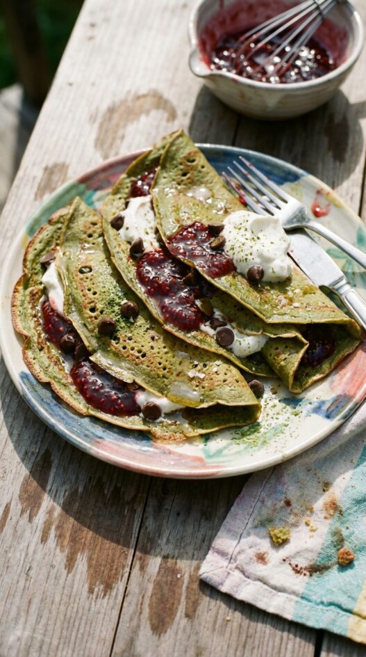 Raspberry and Matcha Crepes