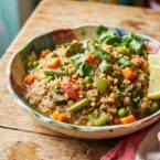 Rava Bath, also known as Khara Bath, is a beloved South Indian breakfast dish, made with toasted semolina, vibrant spices and vegetables.