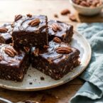 - Slice the brownies into squares and spread the ganache on top.