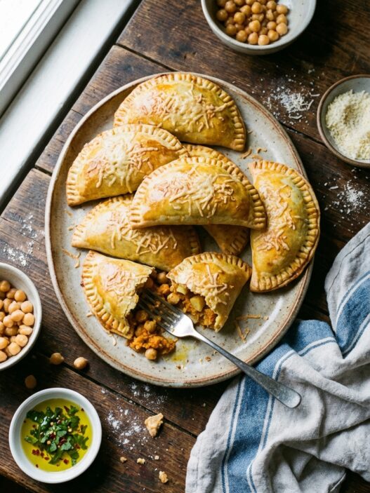 I went to Whole Foods last week and they have a huge display of squash. I love seeing the varieties with all their own shapes, sizes and colors. My eye was drawn to this bright orange Kuri Squash. The orange is vivid. The shape ranged from round to teardrop. I chose the one pictured above. When I cut into it I was overcome with a flowery scent. I could tell it was a squash but the aroma coming from the Kuri squash was strong. I felt that it would work great with a filling of some kind.