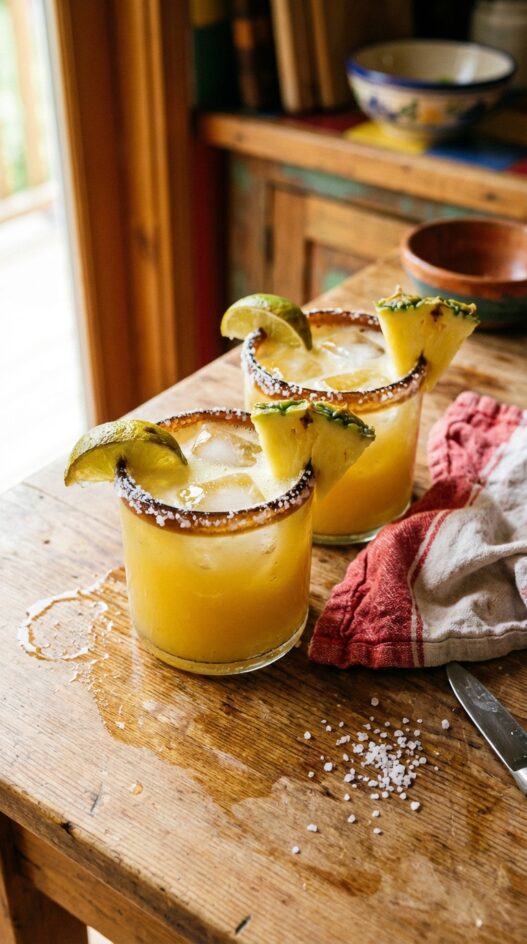 I made this for a birthday party where the only brief was “margaritas but not boring.” Fresh pineapple juice changed everything. Mixed with blanco tequila, triple sec, lime juice, and lemon juice, then shaken hard and strained into salt-rimmed glasses, it tasted like a margarita that had been on holiday somewhere fancy and tropical. The pineapple makes it sweeter and more complex than a classic lime margarita without adding any syrup.