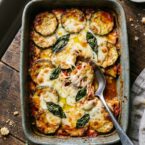 - To make ahead, prepare the layered zucchini parmigiana up to the baking step and refrigerate until ready to bake. Add 5-10 minutes to the baking time.