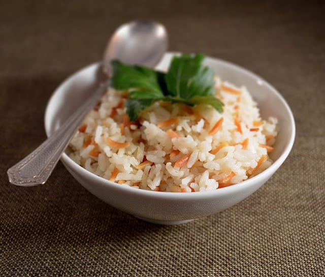 This rice pilaf features toasted orzo, which adds a nutty aroma and flavor to the fluffy rice, making it a delightful side dish that reheats well.