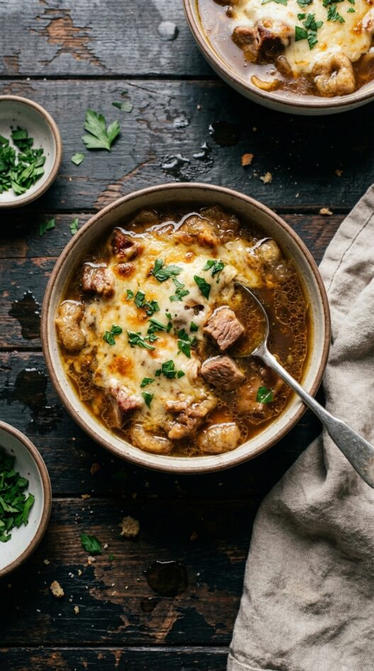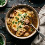 A hearty Midwestern pork soup perfect for chilly evenings. Rich broth, shredded pork, and crispy chicharrones.