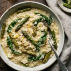 Creamy risotto gets a spring makeover with tender asparagus and the unique bite of ramps. A perfect light yet satisfying weeknight meal.