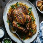 Marinated in yogurt and spices, this roasted chicken is incredibly flavorful. Serve with roasted potatoes and naan for a complete meal.