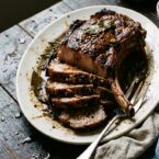 I have found several different Italian recipes for cooking pork or beef with the combination of vinegar and bay leaves. If you have the wonderful tradizionale vinegar, simply drizzling it over a grilled steak is perfect. I had a bone-in pork roast to cook, and used this combination of flavors to develop a marinade for the roast. It results in a beautiful, dark crust on the pork, and smells wonderful while roasting. Serve with some cooked garlic greens and farro or polenta.