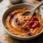 This is a super-simple no fuss recipe, however, one that brings most people who try it to a very happy place. Who knew that hummus would be everywhere from kids parties to more sophisticated events. It is a simple homemade hummus, with roasted bell peppers.