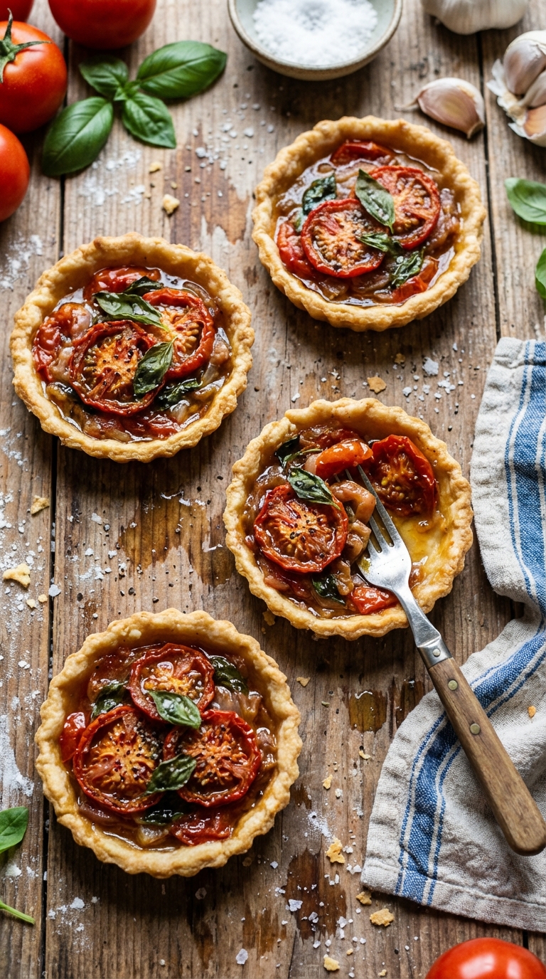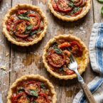 - Spoon the roasted tomatoes into each tart, making sure to add the cooking liquid.
