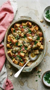 Serve the gravy hot and poured over the squash just before eating. Scallion greens scattered on top cut through the depth visually and flavor-wise. Leftovers reheat well; store squash and gravy separately so the squash doesn’t get soggy.