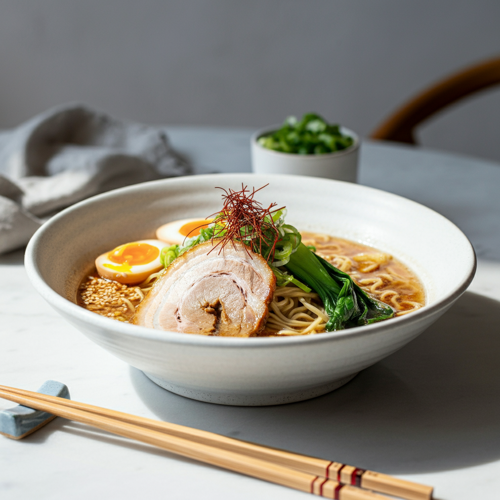 Rich, savory ramen broth takes time, but the result is deeply rewarding. A perfect bowl of comforting noodle soup.