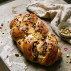 Sweet, spiced and floral, this date challah is braided with a sweet cardamom filling complete with rose water. It’s a show-stopping presentation, too!