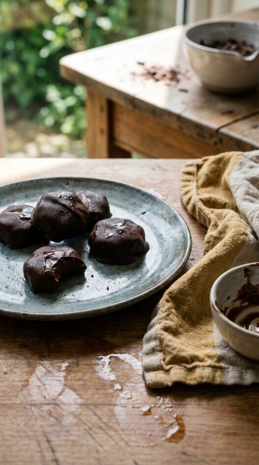 I love making these because they look like something from a chocolate shop and take almost no effort. Two ingredients: dark chocolate and rum. Pour into molds, refrigerate, done. they’re thing you bring out at the end of a dinner party and people assume you’ve been in the kitchen for hours, when really you were just watching the chocolate set. If you’re serious about chocolate, use something in the 70% range, because the rum needs a proper bitter base to land on.