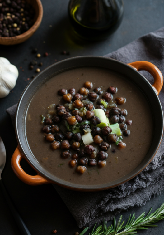 Hearty and flavorful, this Italian black chickpea soup is perfect for a cozy night in. Simple ingredients create a deeply satisfying bowl.