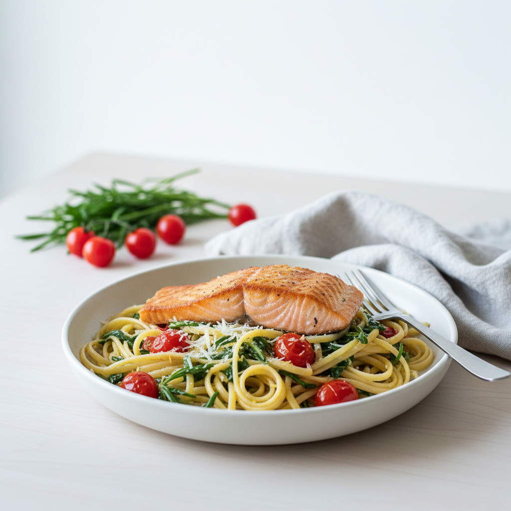 Linguine should be cooked to al dente, which typically takes about 8-10 minutes, ensuring it still has a slight bite before tossing it with the salmon and agretti.