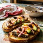 The sardine component can be mixed a few hours ahead, but mash or slice the avocado just before serving. Pre-assembled bruschetta will make the toast soggy within 15 to 20 minutes.