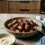 I would say that these sausage bites are the perfect party appetizer. They’re super flavorful from being simmered in the wine, they’re easy to skewer onto a toothpick, and everyone loves a great dipping sauce, right?
