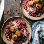 Sweet and earthy beets pair perfectly with pan-seared scallops and creamy barley risotto for a sophisticated yet satisfying meal.