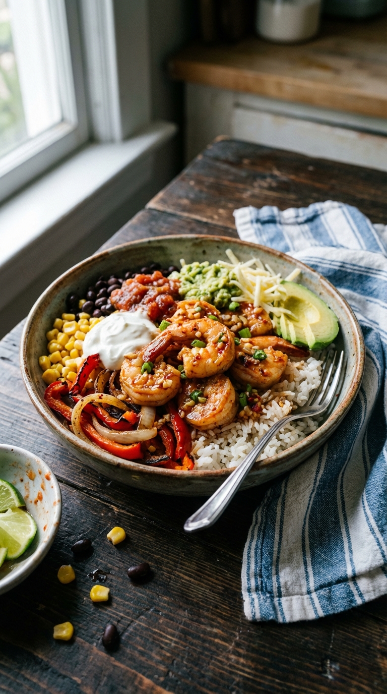 Shrimp Chili and Lime Fajita Bowl