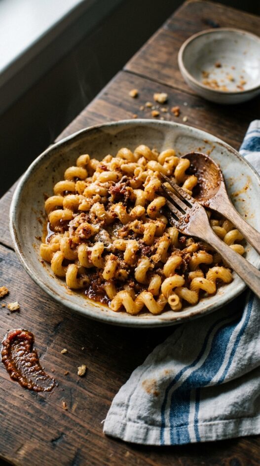 Saving half the toasted breadcrumbs for the top, stirring the other half into the sauce to thicken, was a detail I’d never seen before this recipe. I ended up with two textures on one plate, crunchy and sauce-bound. The anchovies dissolved into the oil and left no fishiness, just salt and depth. My roommate who hates anchovies went back for two helpings.