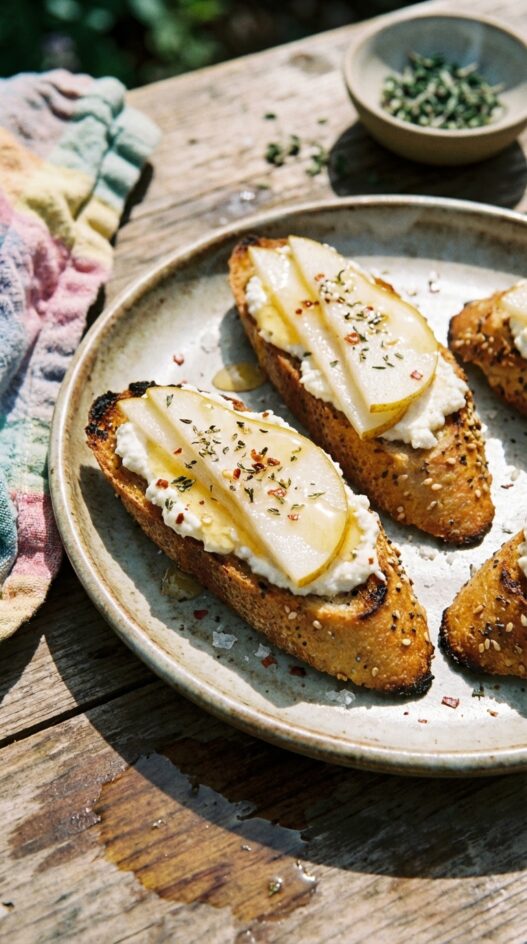Simple Appetizer: Chili and Pear Ricotta Crostini with Herbs