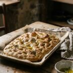 Focaccia is the bread that makes first-time bread bakers feel like they know what they’re doing. Forgiving dough, no shaping required, just press it into a pan with your fingertips. Rosemary and fleur de sel go on top with a good drizzle of olive oil, and the oven does the rest. This version uses fresh yeast, which gives the crumb a slightly lighter, more open texture than instant. The garlic is subtle in the dough and not overpowering. Once you’ve made it a couple of times, you’ll start riffing on it without thinking twice.