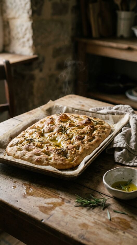 Press your fingers deep into the dough before baking, all the way down to the pan. These aren’t just for looks. They hold the olive oil and keep the surface from bubbling up unevenly in the oven.