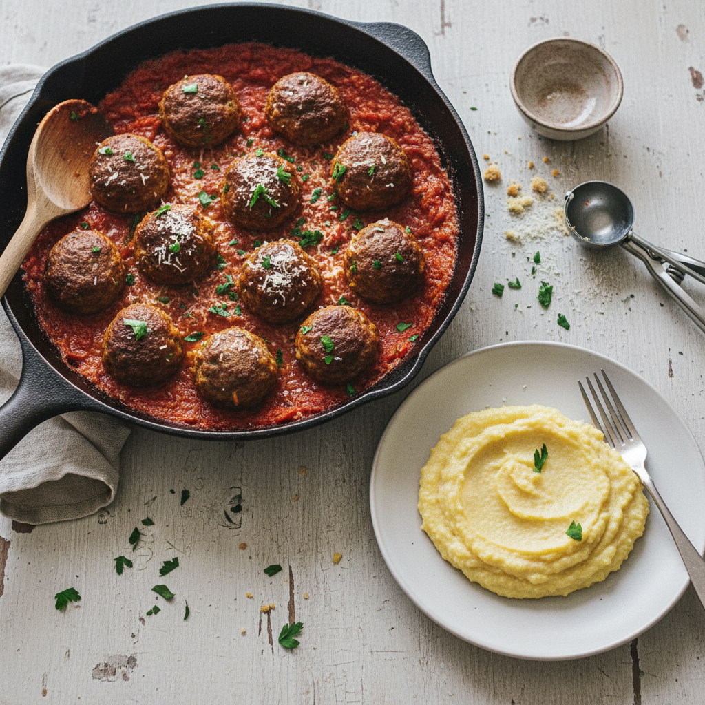 Simple Italian: Tomato and Meatball Bake with Polenta