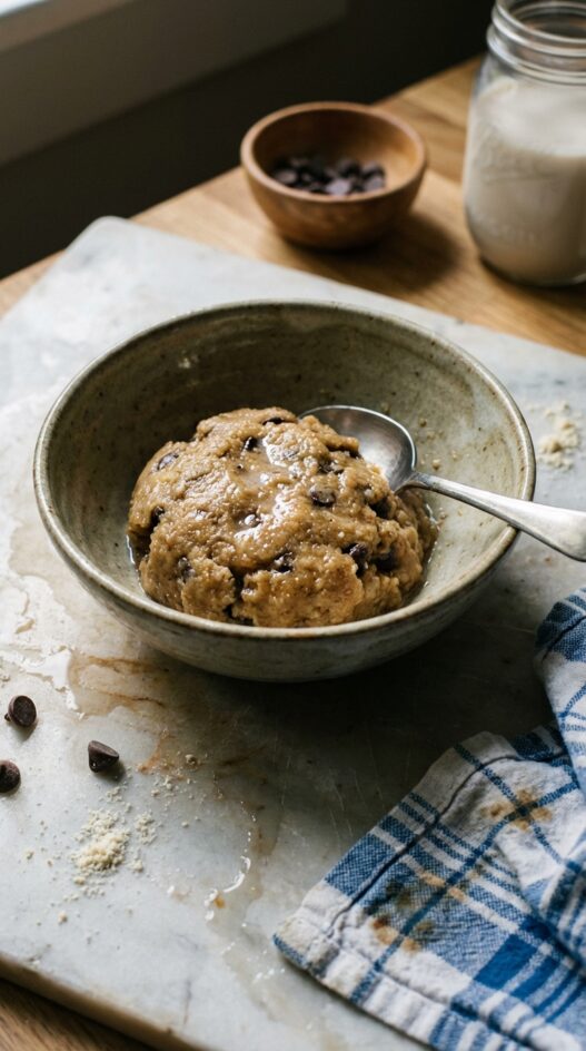 Cookie dough without the guilt trip. Coconut flour, mashed banana, a little vanilla, a few chocolate chips, a couple tablespoons of almond milk, and you’ve got something that actually scratches the craving. No raw eggs to worry about. It takes about five minutes and produces exactly one serving, which is usually the right amount.