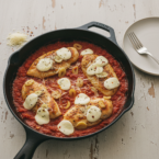 A quick and satisfying one-pan meal where tender chicken breasts are simmered in a garlicky tomato sauce and topped with bubbly, broiled mozzarella.