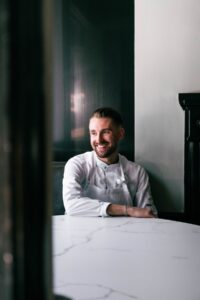 - For the pastry: Sift flour and salt into a bowl, add cubed butter, and use your fingers to combine.