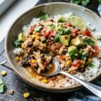 Flavorful chicken and corn simmered in salsa, then served over rice with your favorite toppings. A simple, satisfying weeknight meal.