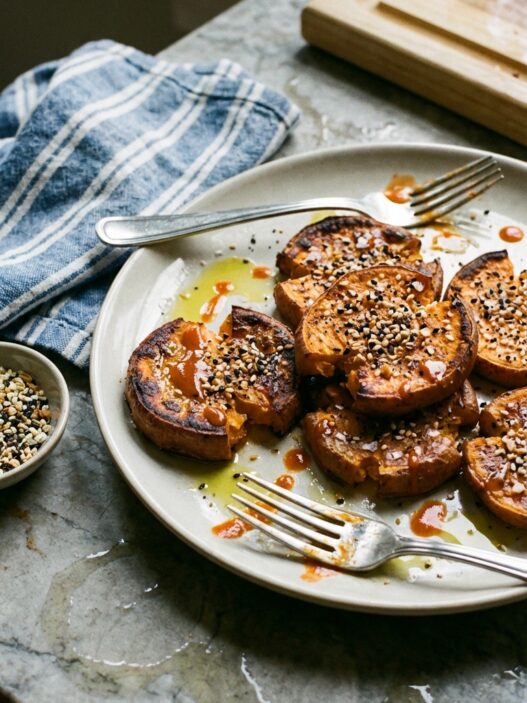 The potatoes will be tender and flavored with the broth from the corned beef, we like smushing them on our plates and adding a few slices of butter.