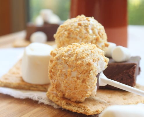 In this decadent rendition of one of summer’s favorite treats, rich {milk chocolate} fudge is dipped in marshmallow creme and then rolled in crushed graham crackers.