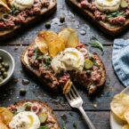Smørrebrød: Beef tartare with tarragon and crispy potato