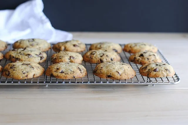 These cookies aren’t anything fancy, and they don’t purport to reinvent the chocolate chip cookie or anything. They aren’t gooey, chewy chocolate chip cookies but are instead tender and crumbly. They aren’t all the same size, and they aren’t all perfectly round. And I love them for it. Because they taste like a cookie. Like a really good cookie. That’s all I wanted–a soft, crumb-leaving, delicious, straight forward cookie, studded and sprinkled with chocolate. And I can tell you with certainty, these are all those things.