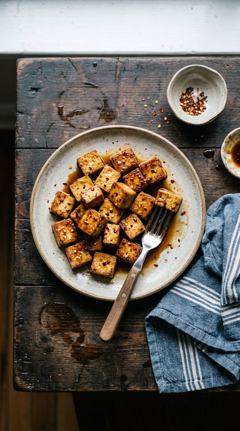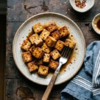 Crispy baked tofu with a sweet and savory soy glaze. A quick, healthy weeknight meal.