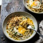 The al dente pasta, parsley, garlicky fried egg, parmesan cheese and pangritata all come together in unison and make this dish a humble, fantastic dinner. It is also so easy (and cheap) that it would make a great meal to serve at for a dinner party with some sides.