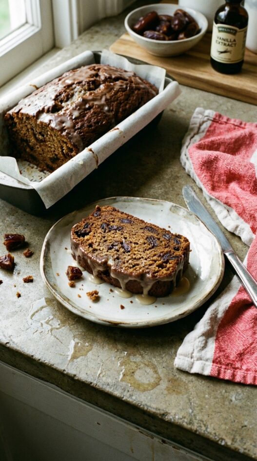 Moist, spiced banana bread with chewy dates. A simple loaf perfect for breakfast or a sweet treat.