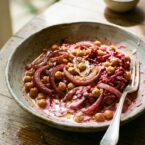 Four tablespoons of plain yoghurt stirred into the warm chickpea and beetroot mixture after you take the pan off the stove.
