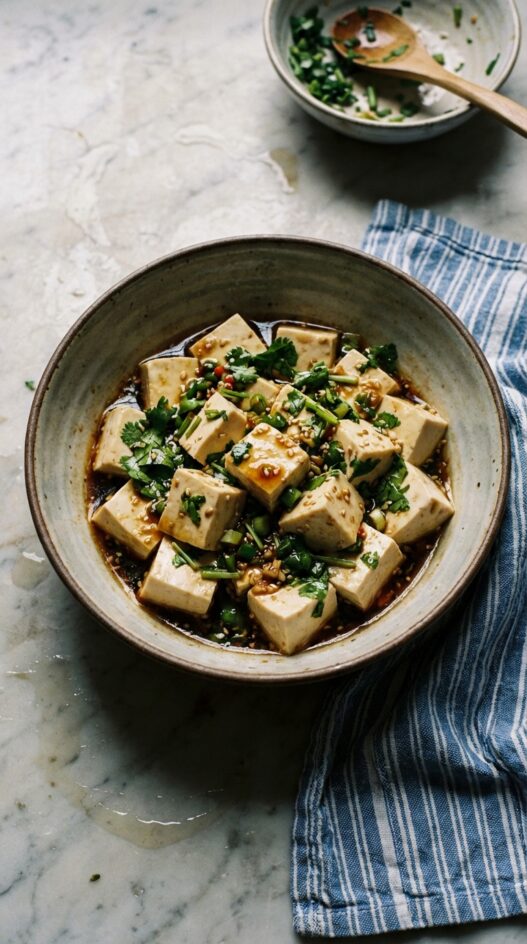 The silken tofu was so delicate, and the sauce was bursting with flavor. I added some extra sesame seeds for crunch!