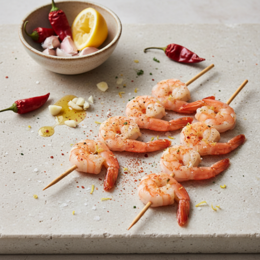 Succulent grilled shrimp marinated in a fiery blend of paprika, cayenne, and lemon. Perfect for a summer BBQ!